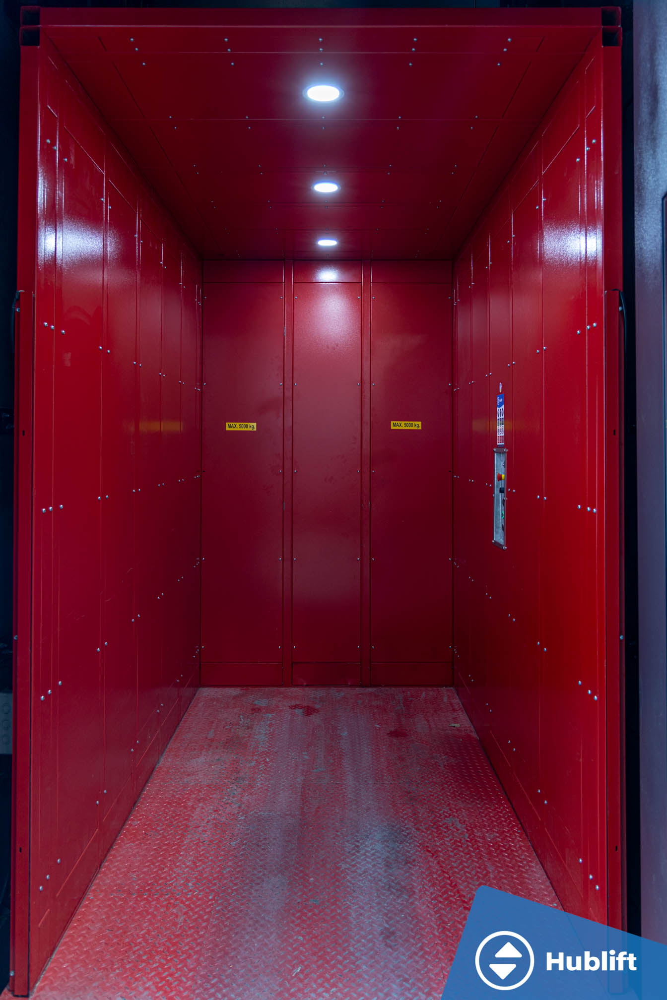 Hublift ontwierp een goederenlift op maat die perfect past in de bestaande schachtconstructie. De lift is uitgevoerd met een volwaardige cabine met lasergordijnen voor veilige persoonsbegeleiding.